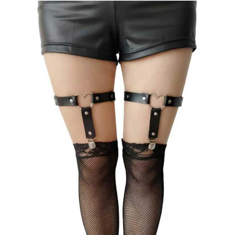 Цей гартер може стати яскравим акцентом у вашому вбранні і повністю вписатися в образ. Як би Ви його не використовували, він приверне увагу оточуючих. Діаметр підв'язки можна легко відрегулювати за допомогою бігунків на гумках. Матеріал: екошкіра, біжутерний сплав Розмір універсальний підходить на: XS, S, M (M маломірний) У комплект входить 2 гартери.