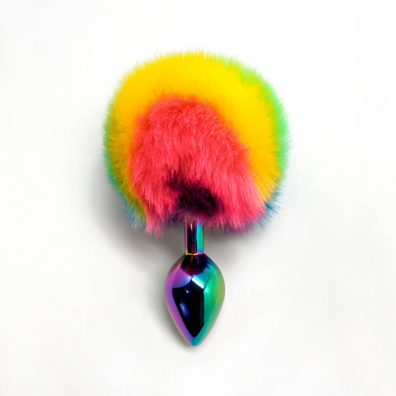 Цей анальний девайс вражає своїм райдужним, багатобарвним дизайном, що моментально приковує погляд і налаштовує на грайливий лад. Пухнастий хвостик, що імітує заячий, запрошує приміряти на себе роль казкового персонажа та додати елемент рольових ігор у ваше ліжко. Дражніть свого партнера неймовірним видовищем і вирушайте разом у світ фантастично яскравих оргазмів, де панують веселощі та безмежне задоволення.