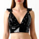 Эффектный виниловый топ Mistress создан для смелых образов и уверенного самовыражения. Глубокий V-образный вырез подчеркивает линию декольте, а плотная посадка формирует выразительный силуэт. Декоративные металлические шипы на чашках и плечах придают модели характер и делают ее акцентной деталью образа.