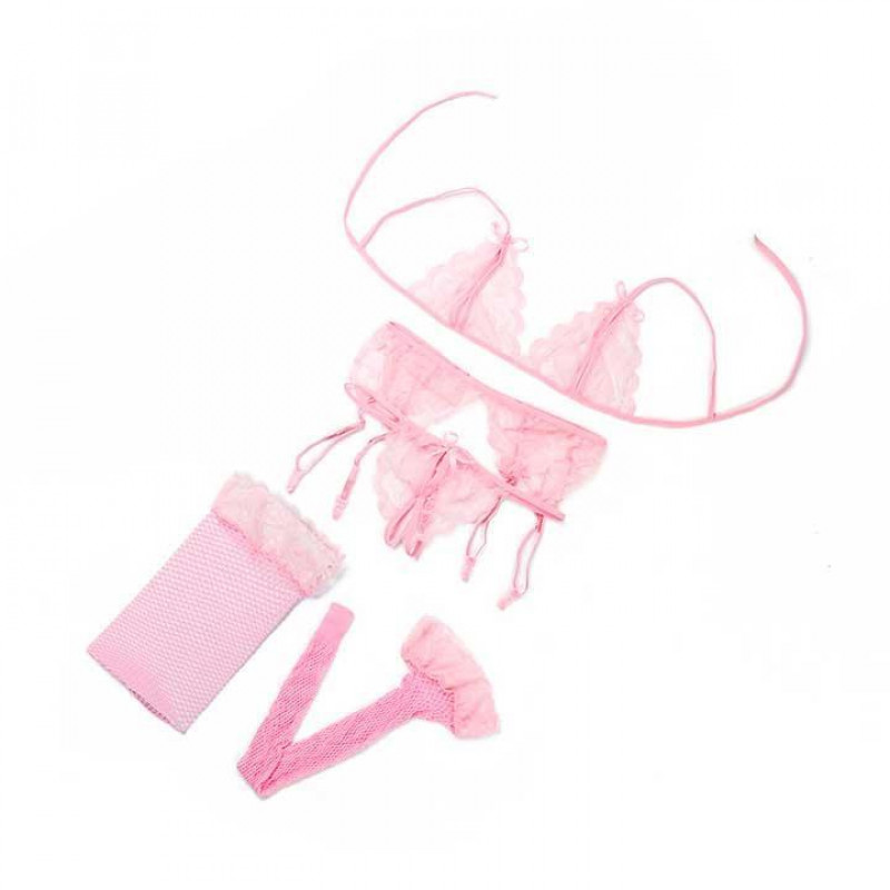 Еротичний комплект білизни з панчохами та поясом, Рожевий