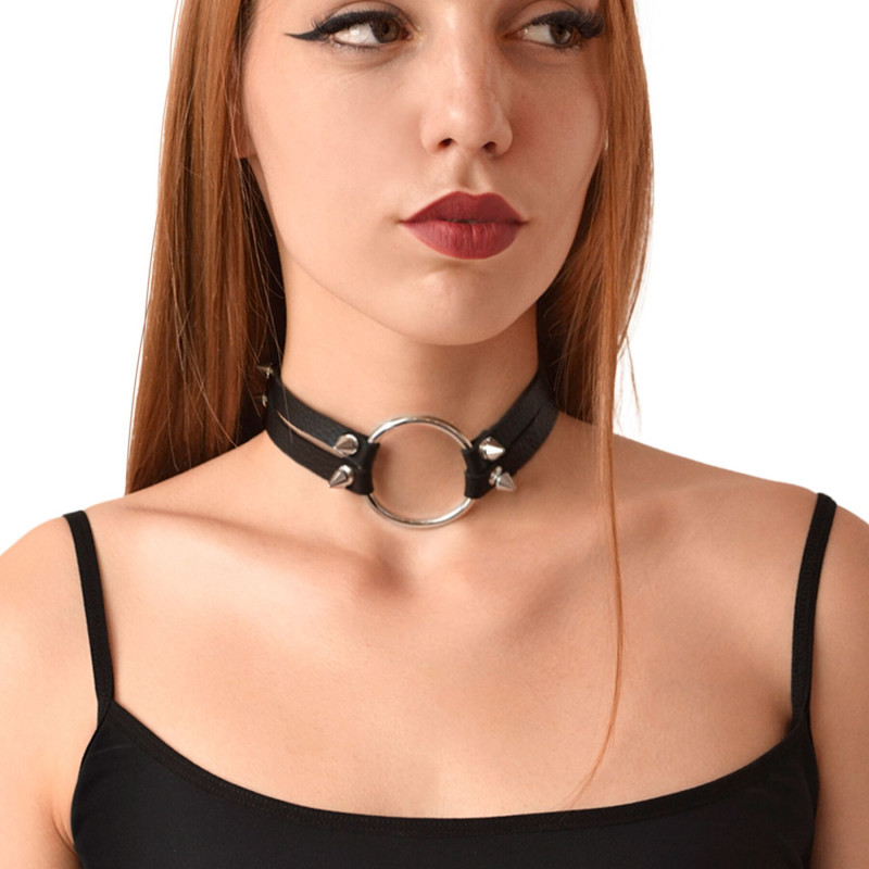 - Виразний дизайн: Центральним елементом чокера є металеве кільце, оточене гострими шипами. Ця комбінація створює потужний візуальний ефект, який привертає увагу та підкреслює вашу індивідуальність.