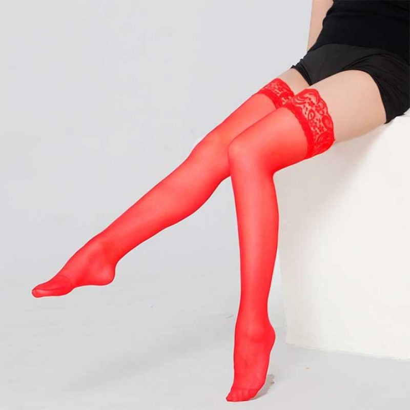 Чулки с кружевом Красный XS/S/М – Эротическое бельё