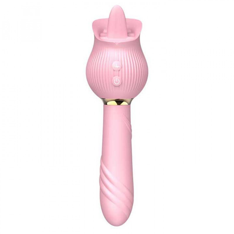 - Подвійна функціональність для комплексного задоволення: Цей інтимний девайс оснащений двома окремими стимулюючими елементами. З одного боку – реалістичний язичок для делікатної та водночас інтенсивної кліторальної стимуляції, що імітує ніжні пестощі. З іншого – витончена вібраційна ручка з вертикальними смужками, створена для цільового масажу точки G та вагінальної стимуляції.