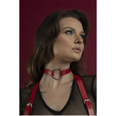 Портупея з чокером та гартерами Leg Avenue 2PC Vegan Leather Nurse Harness Teddy and Headband Red M