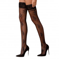 Панчохи Passion ST119 5 black з ажурною силіконовою резинкою, квітковим декором та люрексом
