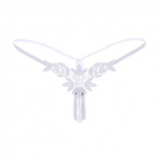 Стрінги з намистинками та квітами - Білий - S/M - Еротична білизна