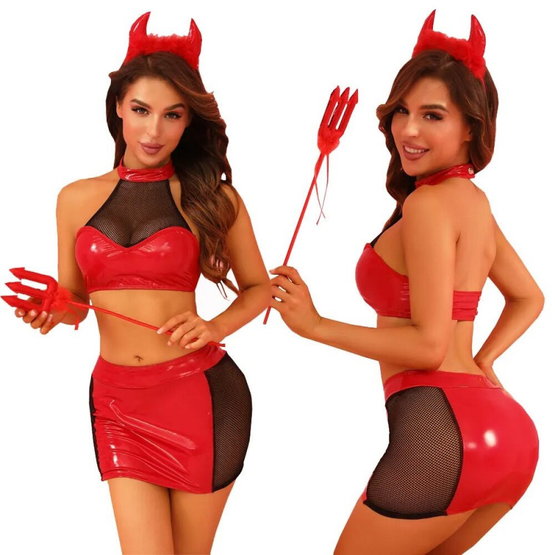 Еротичний костюм дияволиці JSY Спокусниця Джен One Size, топ, спідниця, трусики, ріжки, жезл