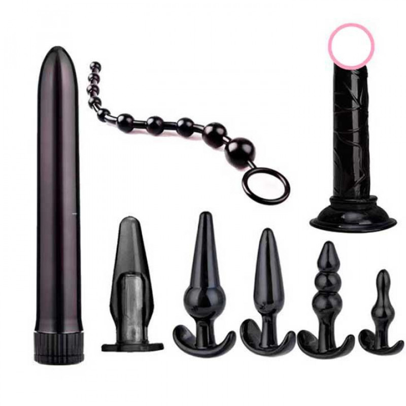 Чудовий набір для анальних утіх. Якщо ви ніколи не пробували гри з анальною стимуляцією, то цей набір для вас! Складається з 8-ми предметів, доповнений аксесуарами для сексу. Всі вироби легко мити і зберігати. Підійде як чоловікові так і жінці! Рекомендується використовувати зі змазкою на водній основі.