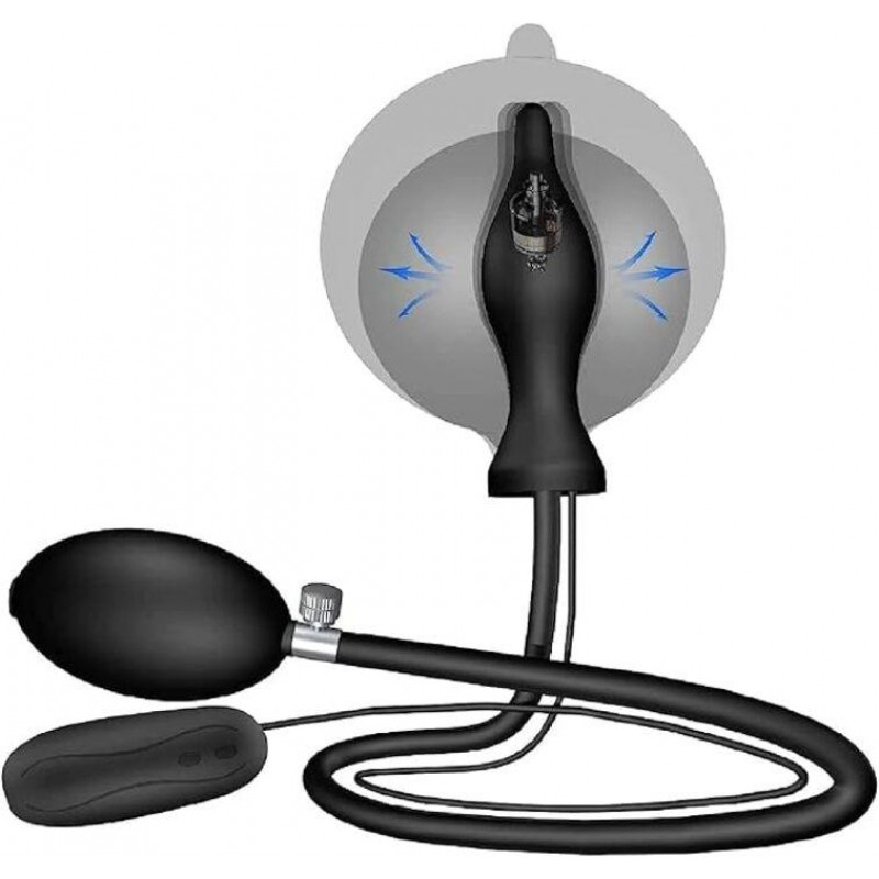 Надувний анальний розширювач із вібрацією. Матеріал гіпоалергенний силікон, прийде до душі шанувальникам анальних розваг. Іграшка обладнана ручною грушею, і пультом керування з потужним моторчиком усередині корка, генерує 10 рівнів вібрації від найніжнішої до найпотужнішої. Вона легко розширюється від 3,8 см у діаметрі до 7 см. Накачувати корок можливо й більше 7 см, але на більшому діаметрі є ризик розриву розширювача. Щоб зробити Ваші відчуття максимально приємними, рекомендується використовувати вібратор із лубрикантом на водній основі. Колір: чорний