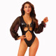 Особое внимание в боди JSY Интригующая Жюстин заслуживают длинные рукава. Изготовленные из тонкой, мягкой сетки, они украшены пышными воланами на запястьях. Эти детали придают образу изящество, романтичность и легкость, создавая ощущение воздушности и утонченности. Они служат изысканным контрастом к более смелой передней части боди. При этом спинка и область ягодиц боди полностью закрыты, что обеспечивает необходимый баланс между откровенностью и элегантностью, а также гарантирует комфорт при носке. Высокая посадка боди JSY на бедрах визуально удлиняет ноги и подчеркивает линию талии, делая фигуру более стройной и пропорциональной. Этот продуманный элемент дизайна помогает создать идеальный силуэт, который выгодно смотрится на любой фигуре в пределах заявленных размеров. Боди JSY с мокрым эффектом – это идеальный способ подчеркнуть вашу женственность и уникальность.