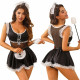 Эротический костюм горничной JSY Сияющая Агата, демонстрирующий комплектность: боди, юбка, обруч, метелка