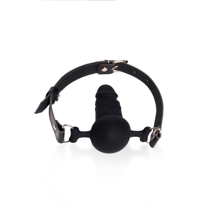 Кляп силиконовый с фаллоимитатором Art of Sex - Phallus, экокожа, черный
