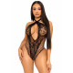 Кружевное тедди Leg Avenue Lace and net halter teddy, глубокий вырез, One size, Black