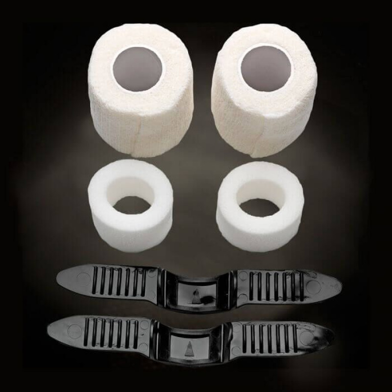 - Два самофіксуючі бинти (4 м на 6 см): Еластичні бинти забезпечують додаткову підтримку та надійне обгортання. Їхня самофіксуюча структура дозволяє легко та зручно закріплювати пристрій без використання додаткових фіксаторів.