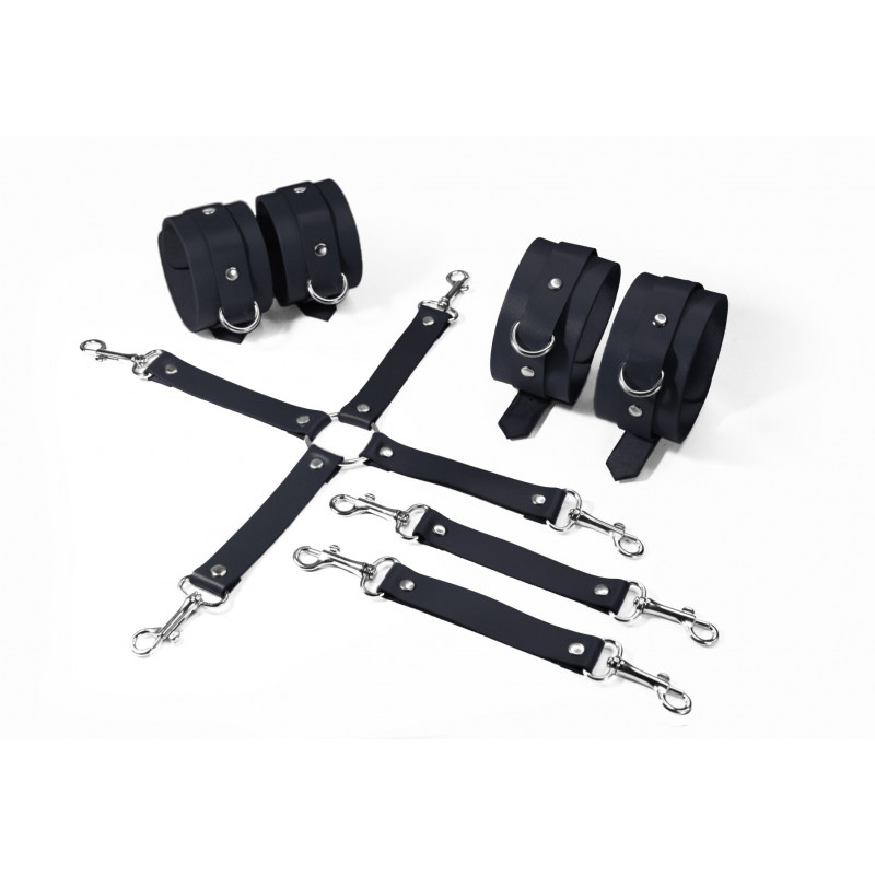- Комплектація: Наручники, поножі, хрестовина на карабінах