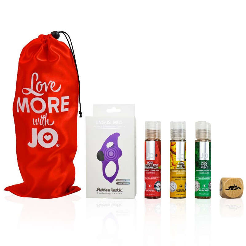 Набір для двох Диявольська вишня: 3 змазки System JO, віброкільце, кубик з позами