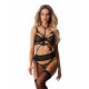 Комплект Obsessive Premisis Black 3-pcs crotchless set 2XL/3X - деталі оздоблення, регульовані бретельки, металева фурнітура