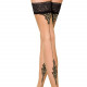- Вишуканий дизайн: Верх панчох прикрашений ніжним чорним мереживом з витонченим флористичним візерунком, що додає образу особливої розкоші та привабливості.