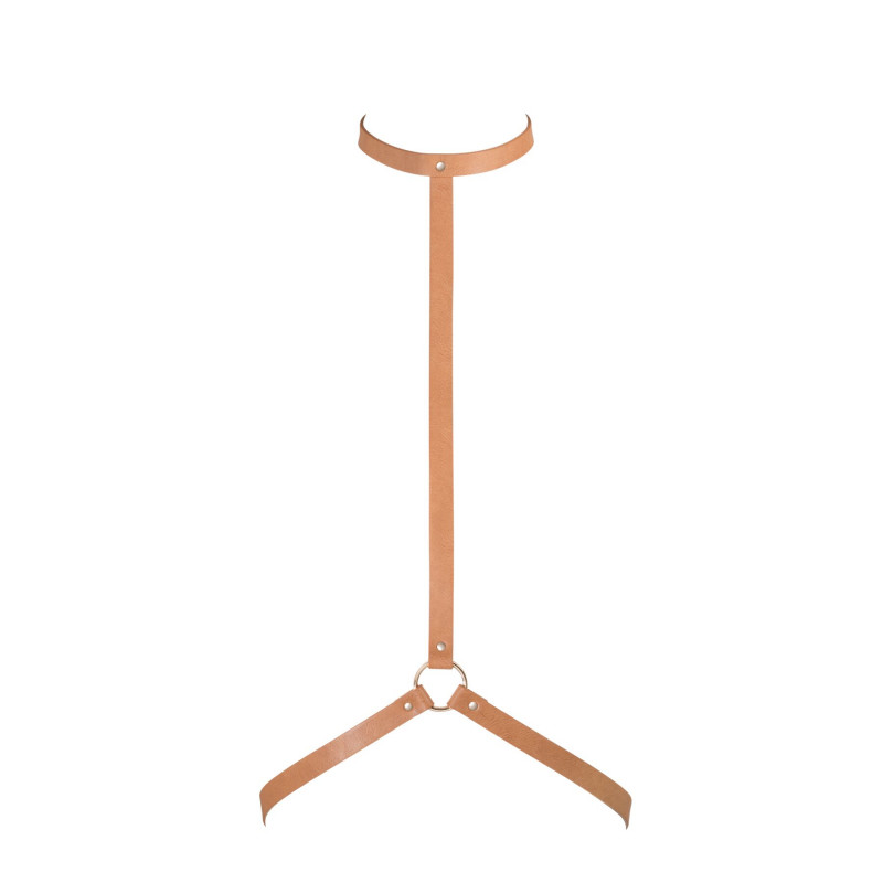 Универсальность – еще одно важное достоинство данной модели. Портупея MAZE - I Harness Brown способна преобразить любой образ, добавляя ему необходимую изюминку. Она прекрасно дополнит вечернее платье, придавая ему нотку дерзости и роковой привлекательности. Также она может стать интригующим акцентом в повседневном наряде, например, поверх футболки или рубашки, создавая смелый и запоминающийся лук. Эффектный чокер, являющийся частью дизайна, соблазнительно обрамляет шею, а изящные ремни выгодно подчеркивают достоинства женской фигуры, создавая гармоничный и притягательный силуэт.