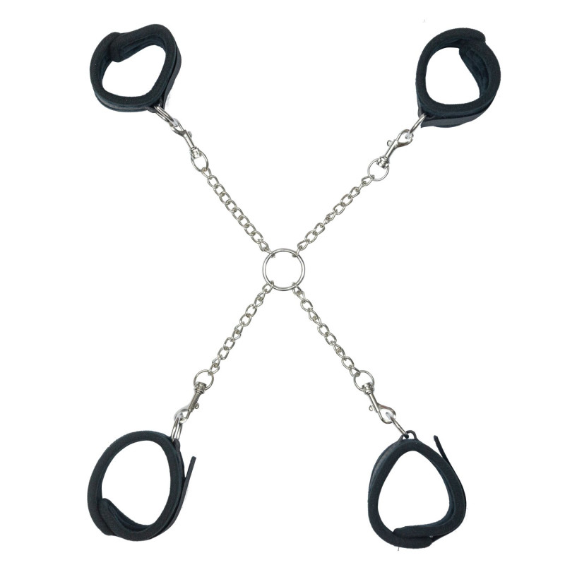 Ця фіксуюча хрестовина відрізняється продуманим дизайном, що поєднує функціональність та естетику. Основу складає міцний металевий каркас, що забезпечує незламну надійність. Доповнюють його широкі, регульовані ремені з високоякісних матеріалів, які міцно, але водночас безпечно утримують кінцівки. Кожен елемент ретельно продуманий, щоб забезпечити як ефективність, так і певний рівень комфорту в межах задуманої ролі, мінімізуючи ризик травм при правильному використанні.
