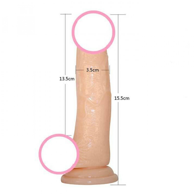Цей виріб має довжину 15.5 см, що є оптимальним розміром для більшості користувачів, забезпечуючи глибоку стимуляцію без надмірного дискомфорту. Максимальна окружність стимулятора становить 10.5 см, що відповідає діаметру приблизно 3.3 см, а діаметр основи досягає 3 см, що забезпечує стабільність та комфортне утримання. Тілесний колір фалоімітатора підкреслює його реалістичність, створюючи максимально природний вигляд. Гладка, приємна на дотик поверхня забезпечує комфортне проникнення та легке ковзання при використанні лубриканту на водній основі.