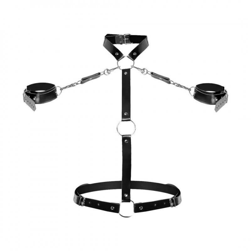 Шкіряна жіноча портупея Art of Sex Ursula чорна з наручниками, розмір XS-2XL