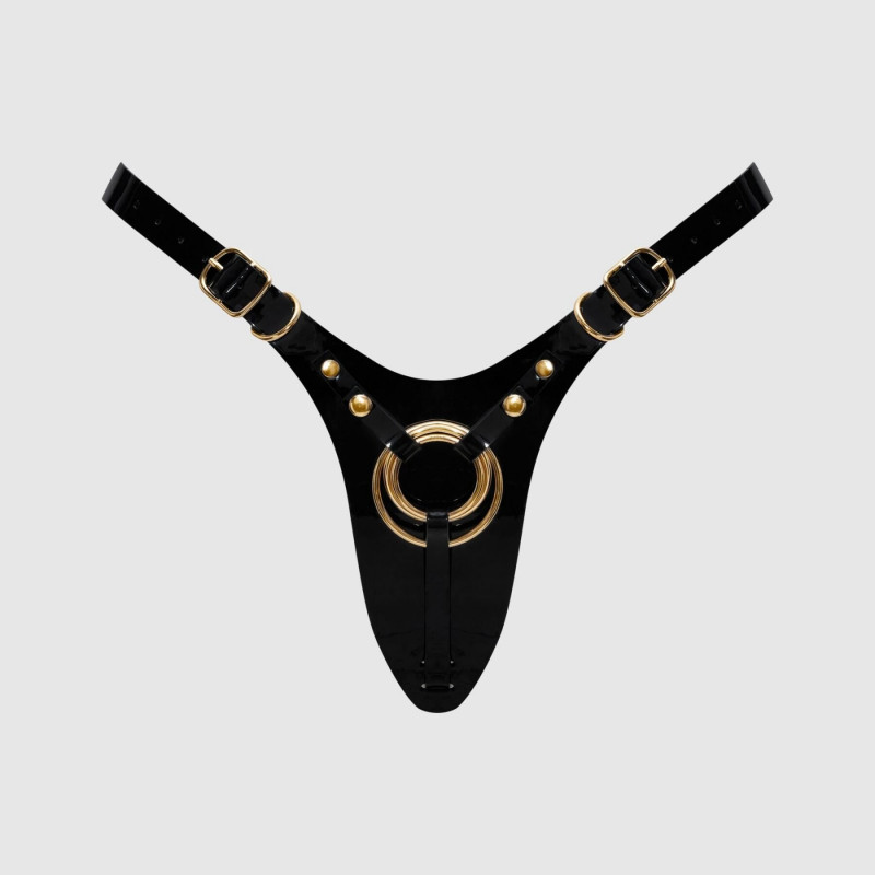- Эстетика и Стиль: Глубокий черный глянцевый цвет придает аксессуару особую пикантность и загадочность. Дизайн в виде harness-портупеи подчеркивает изгибы тела, добавляя образу смелости и сексуальной притягательности. Это не просто функциональный предмет, а полноценный элемент эротического наряда.