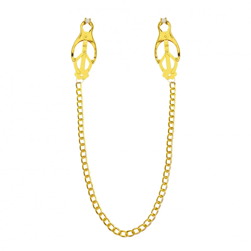 - Унікальний дизайн «Clover»: Чотирилисник конюшини, виконаний у золотих та білих відтінках, надає цим затискачам для сосків особливої привабливості. Це не просто аксесуар, а справжня прикраса, що додає пікантності та розкоші. Довгий ланцюжок, що з'єднує затискачі, елегантно спадає, візуально подовжуючи силует і підсилюючи гру світла.