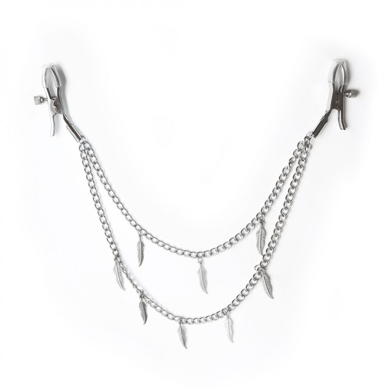 Особливого шарму та грайливості додають мініатюрні підвіски у вигляді пір'їнок, що ніжно погойдуються вздовж ланцюжків. Вони створюють ілюзію легкого дотику та додають динаміки, перетворюючи звичайний аксесуар на справжню прикрасу-стимулятор. Спостерігати за їхнім танцем на тілі під час еротичних практик — це окреме візуальне задоволення, що посилює атмосферу пристрасті.